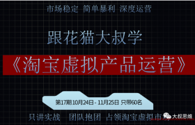 跟花猫大叔学《淘宝虚拟产品运营》第17期报名今天正式开始 抓住双11,双12黄金季 ,事半功倍,名额有限,先到…