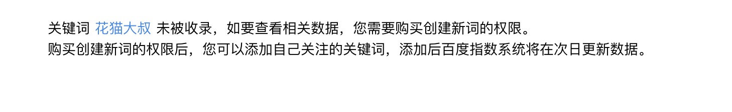 我们在百度指数中搜索关键词,看看是否有指数,例如我搜的“花猫大叔” 它告诉我