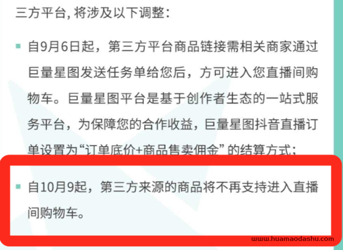 从2020年10月9日 起,第三方来源的商品将不再支持进入直播间购车