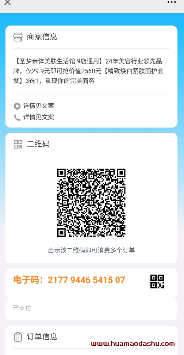 “【圣梦亲体美肤生活馆】尊敬的赵志勇,您购买的商品「圣梦亲体美肤生活馆」,需提前一天电话预约,查看订单详情请点 ”