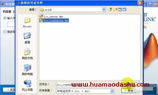 19.选择解压后Matlab 2012a crack破解文件夹下的许可文件lic_standalone.dat。